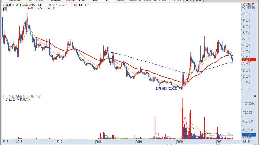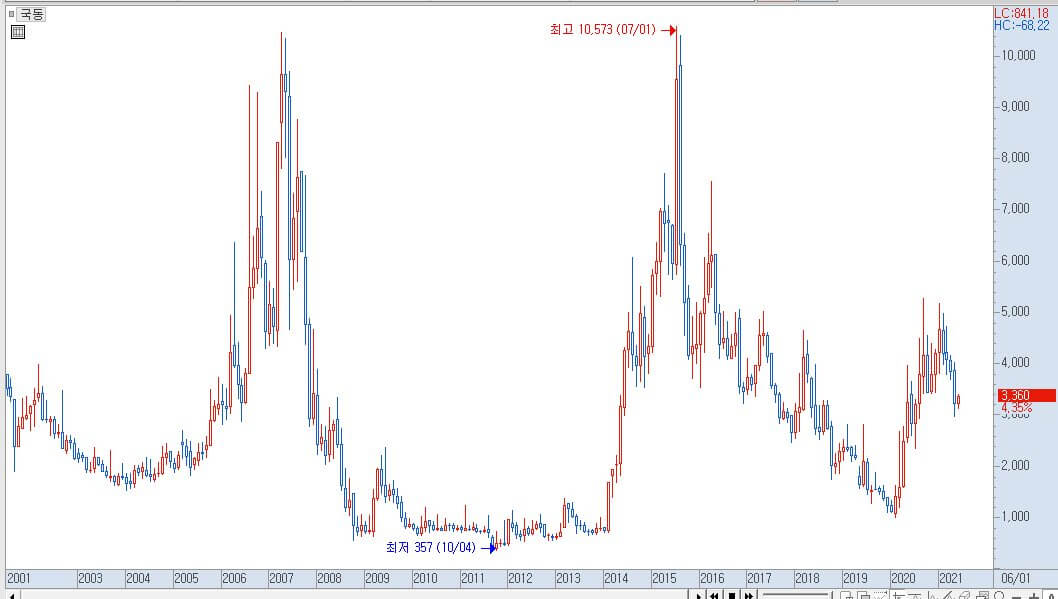 국동 주가 월봉의 흐름입니다.