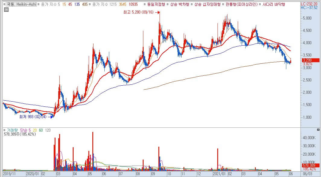 국동 주가 하이킨아시 차트